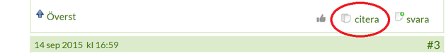Nedanför varje inlägg hittar du en Citera-knapp som du kan använda för att citera inlägget.