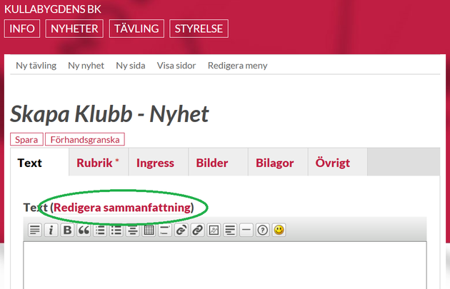 Här kan du skriva precis vad du vill. Oavsett vad du skriver kommer texten aldrig att visas när hela nyheten visas. Däremot kommer hela sammanfattningen att visas i nyhetsflödet, oavsett vilken text du har matat in och oavsett om du har matat in någon ingress.