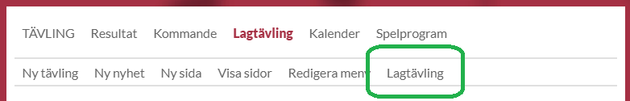 Klicka på menyalternativet Lagtävling i den lilla admin-menyn: