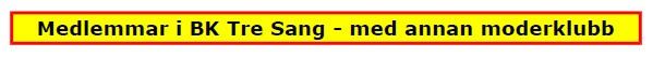 En del av andra klubbars medlemmar stöder vår klubb genom ett så kallat B-medlemskap. För blygsamma 70 kr/år blir man då också medlem hos BK Tre Sang. För närvarande har vi följande B-medlemmar registrerade. En B-medlem har är fullvärdig medlem med samma rättigheter söm övriga.