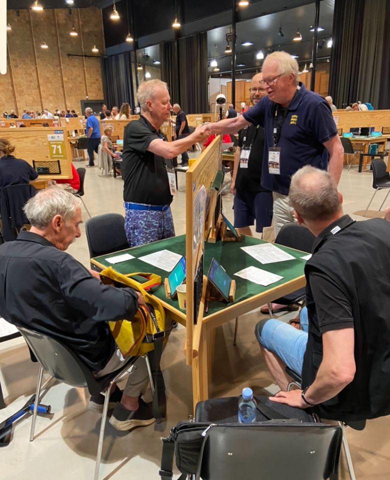 Först 5.20 mot Schweiz, därefter en härlig blitz, 20-0 mot England med alltid trevlige Gunnar Hallberg vid ena bordet.
