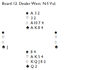 Du har 11 säkra stick och behöver således ordna två till, dina möjligheter är att stjäla hjärter i bordet eller maska i samma färg. I teorin kan man också göra en reverse dummy och saka en spader på tredje klövern för att stjäla upp den färgen. Spela på skvis är ännu en möjlighet. Men det finns en metod som är säkrare, den bygger på att man ska stjäla hjärter på den korta trumfhanden.