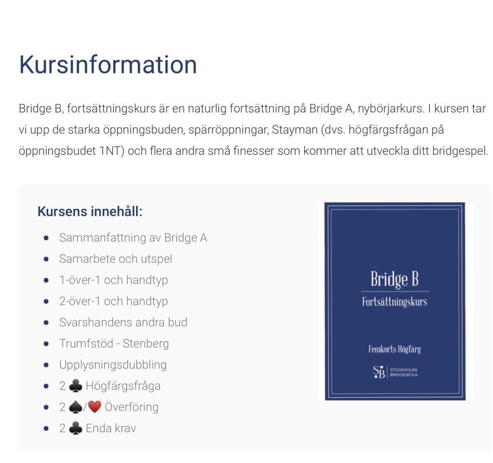 Fortsättningskurs B kommer att starta onsdag onsdag 21 januari kl 18.