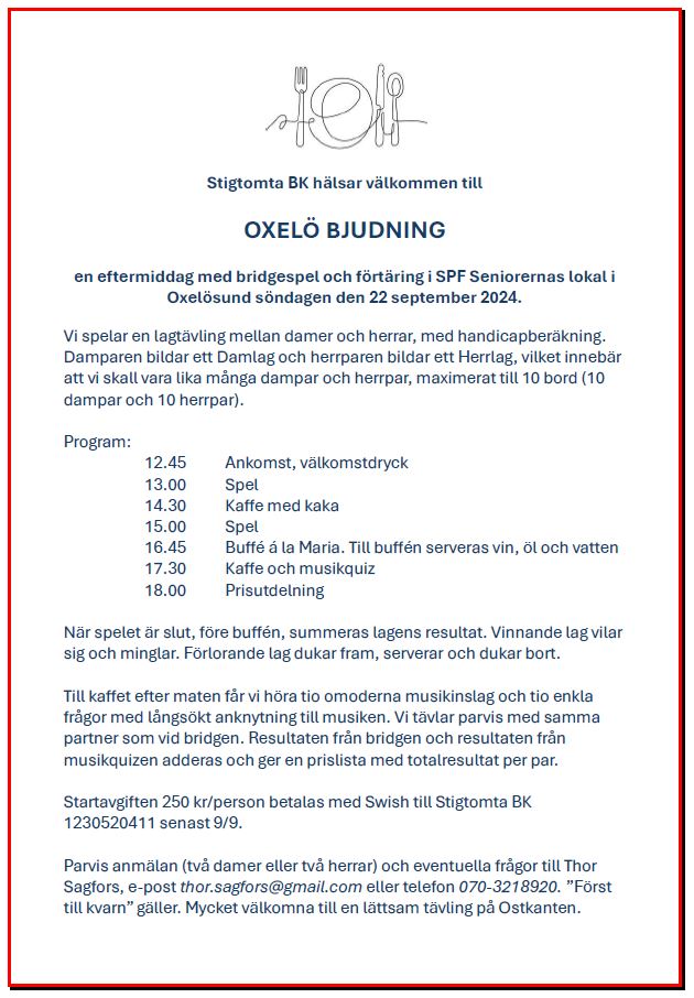 OXELÖ BJUDNING 22/9 2024