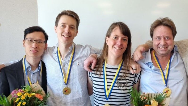 Sjöqvist med fr. vänster Johan Säfsten, Simon Ekenberg, Marion Michielsen och Måns Sjöqvist. Saknas på bild: Per-Erik Malmström och Peter Fredin.