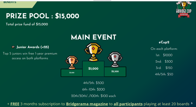 World Bridge Federation presenterar ett nytt spännande globalt initiativ: e-Bridge Cup, som skapats i samarbete med BBO och Funbridge – två av världens ledande bridgeplattformar online.