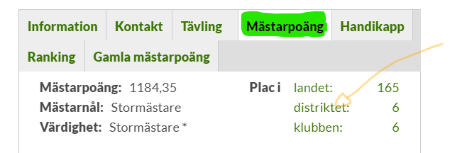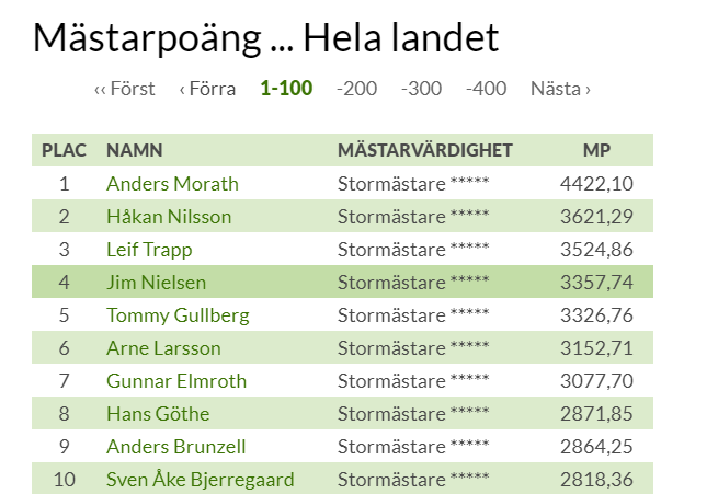 … kan du nu välja landet / distriktet / klubben och få fram den lista du vill se genom att klicka på den gröna texten.