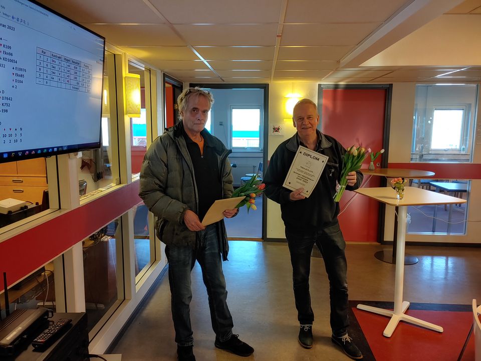 9 par kom till start och vi spelade därför 5 brickor per rond (9 ronder inklusive frirond). Inför sista ronden var det helt jämt mellan segrarna och tvåorna Lars-Åke Nilsson-Jan Nilsson från Hässleholm. På de nästföljande fyra brickorna böljade ledningen fram och tillbaka, inför sista given skiljde det två poäng till segrarnas favör! När de sedan tog en delad topp på sista brickan var saken klar.