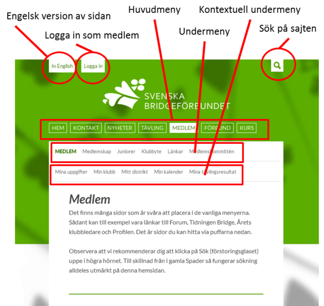 Svenska Bridgeförbundets logotyp är klickbar och tar dig alltid tillbaka till startsidan.
