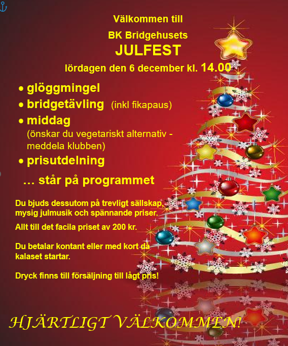 Nästa TRÄVLINGSBRIDGE spelas torsdagen den 4/12.