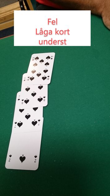 - De lägre korten i fallande ordning och med det lägsta ovanpå de andra