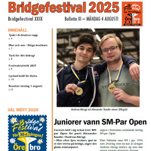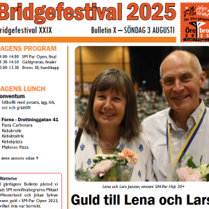 Festivalen är nu över för denna gång. Vi tackar er alla för att ni bidrar till att göra vår Bridgefestival till en av de bästa i världen och hoppas att ni kommer tillbaka nästa år!