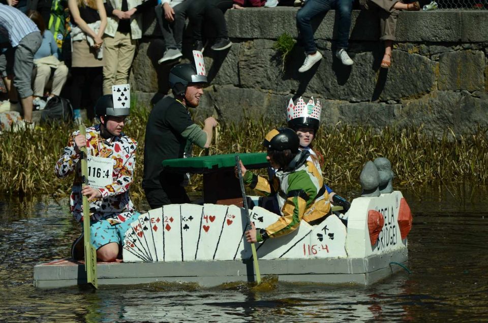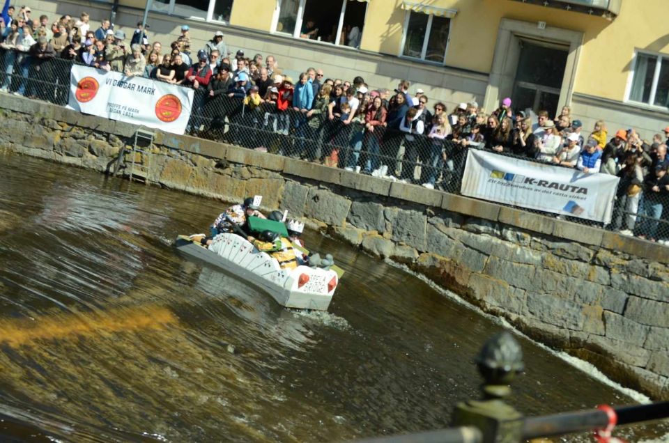 För er som inte bor i Uppsala kan jag nämna att forsränningen är en väldigt stark valborgstradition, där studenter bygger flottar för att ta sig ner över Fyrisån.