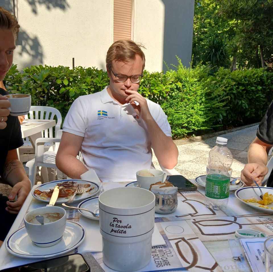 Imorgon väntar Nederländerna för U21, Hakim har sovmorgon och för U26 USA 2, Andreas och Ivar får sova ut. Det blir lite speciellt med sju matcher imorgon, känslan är att det enda Mikael och jag gör är linear (lämnar in laguppställningar) samt delar ut motståndarnas deklarationer till spelarna. Bland annat fick U21 möta en variant av Slawinski-utspel (10-12-regeln från honnörer och 11-regeln från hackor) vilket tog sin tid att sätta sig in i.