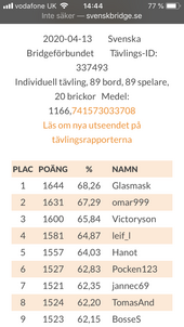 Och sanslöst ofta finns inget bud som ens i närheten visar det man behöver/vill göra. Det kan vara efter 1hö, helt plötsligt omöjligt att visa en utgångskrävande hand med trumfstöd…bra system! För att inte tala om hur ofta den påstår sig visat något som den inte ens är i närheten av att ha. Nej, Funbridge har en bit kvar vad gäller produktutveckling.