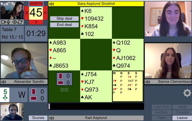 Klicka på denna länk https://kibitz.realbridge.online/, välj Mixed-OBS. Ni kan nu se borden och ta plats för att följa budgivning och spel. Det är 30 minuters fördröjning mot verkligheten.