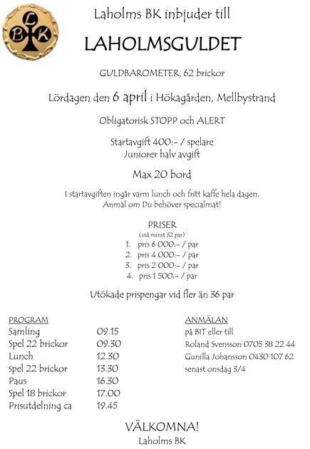 | 1 | Niklas Andrén Göran Lindberg | Lunds BK | 59,89 |