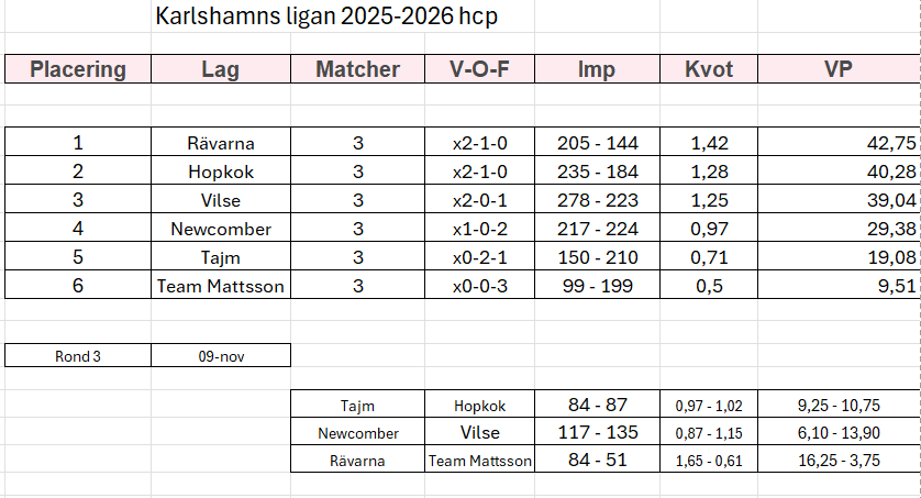 Rond 3 i Karlshamnsligan är spelad och Rävarna har tagit över ledningen av ligan.
