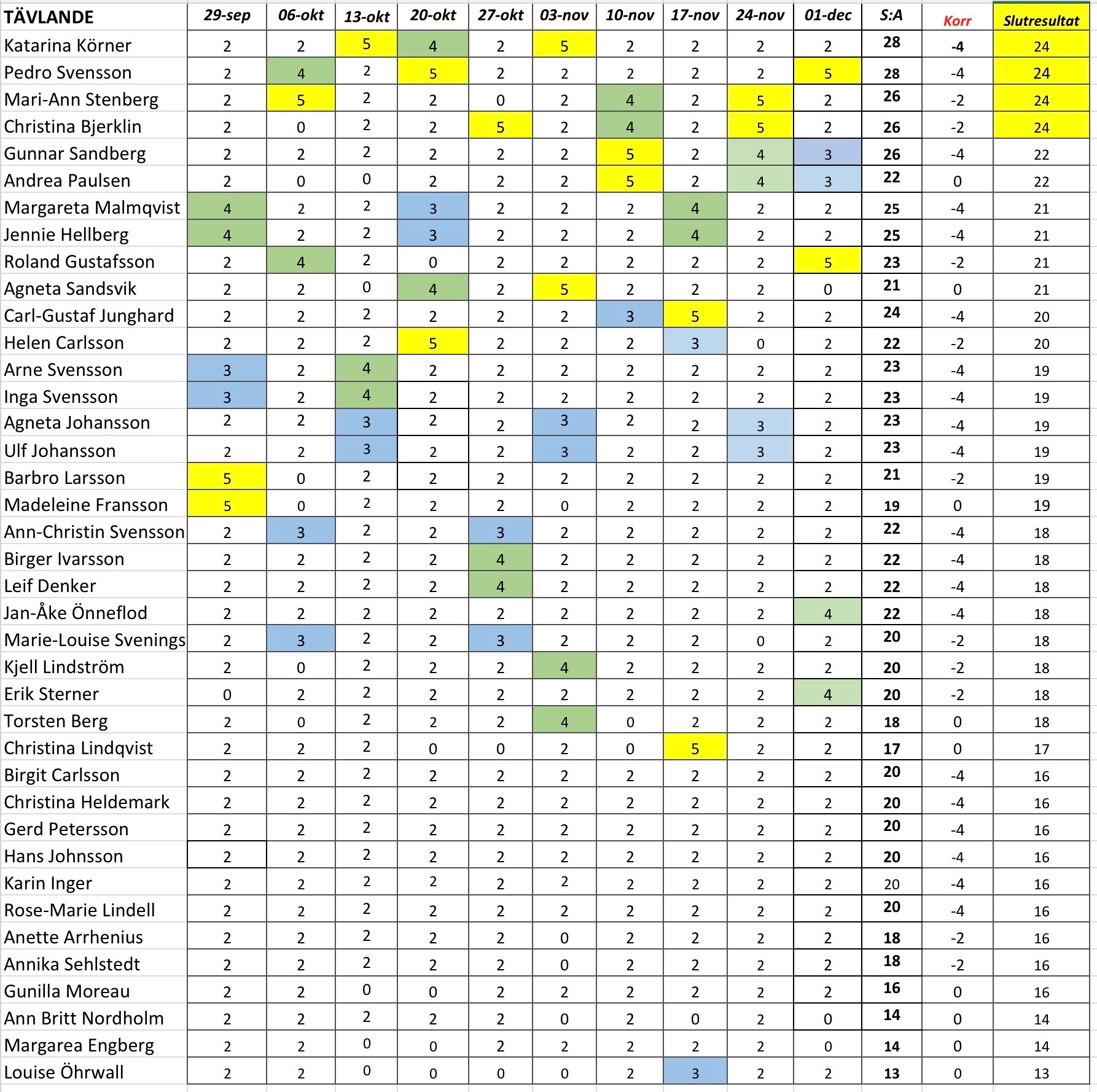 Resultat redovisas fortlöpande på Facebook och som bilaga här på hemsidan.