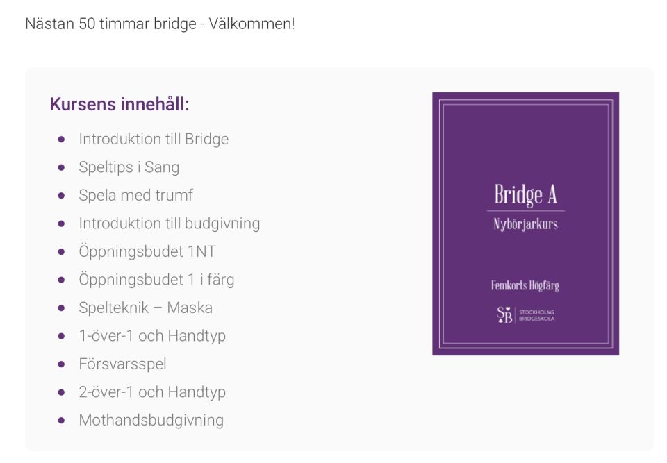Hjärtligt välkommen på nybörjarkurs i bridge.