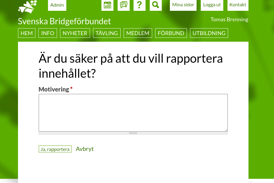 När man klickat på ”Ja, rapportera” skickas det ett meddelande direkt till en moderator som då uppmärksammas och gör en bedömning om inlägget behöver modereras.