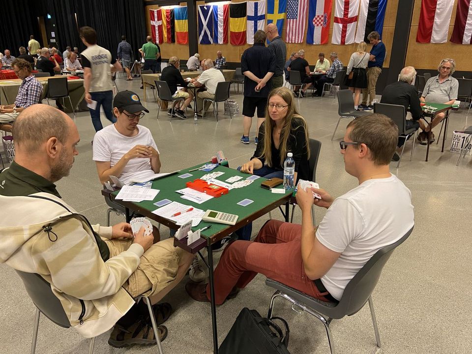 När 64 av de 102 brickorna i finalen är spelade ser vi Thomas Andersson - Johan Bennet, Överums BK i täten före Peter Bertheau, Uppsalabridgen och Mikael Rimstedt, Harplinge BK. Tredjeplatsen innehas av Erik Fryklund och Tomas Börgesson från Filbyter bridge.