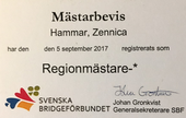 Zennica Hammar har vandrat snabbt genom klasserna och under augusti passerade hon 100 mästarpoäng och fick ny mästarvärdighet. Från regionsmästare till regionsmästare *.
