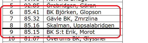 Gårdagens tvåa, Örebridgen, Göran, har med hjälp av en motig tag halkat ned till femte plats, men de har inte mer än 10 VP upp till medaljplats.