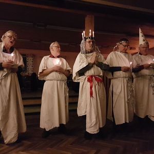 Sankta Bertil med tärnor sjöng egendiktade sånger och bjöd på sig själva. Dessutom samlade de in en ansenlig summa som oavkortat gått till Läkare Utan Gränser.