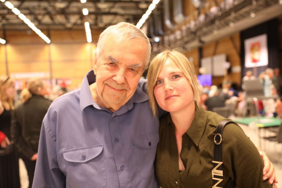 Sara Olofsson spelar med farfar Lennart Bylund och de har börjat tävlingen på bästa sätt. Paret har spelat stabilt hela dagen och går till nattvila i ledning på 60.5%.