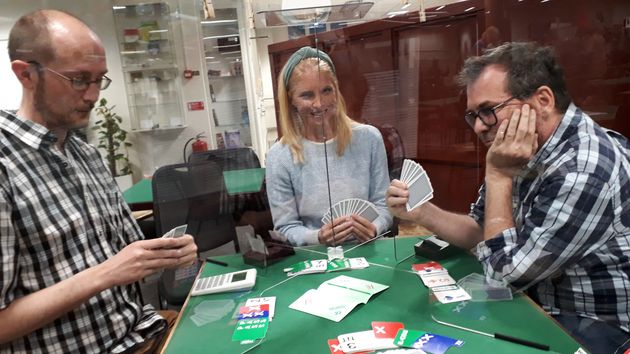Dels berodde det nog på plexiglasen, det var lite svårare att höra personerna vid det egna bordet, och ljudet studsade gärna bakåt i lokalen. Det här är alldeles säkert bara en tidsfråga innan spelarna vänjer sig vid att tala tystare (eller helt undvika onödigt snack!).