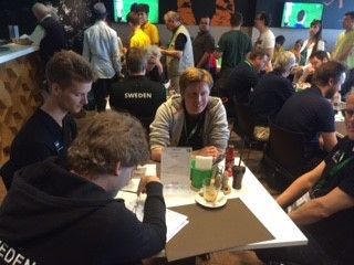 Det hade sagts oss att Sveriges match skulle visas i ramateatern på plats, men istället visade de Ungern - Norge. När arrangören hade blockat ut BBO från nätverket för oss vanliga dödliga det blev lite snopet.