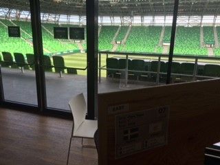 PLUS: Fantastisk spelarena, så mäktigt med utsikt över fotbollsarenan från många av spelborden! Utöver det rymligt och gott om toaletter.