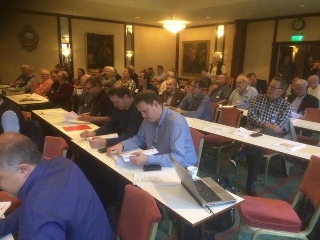 Efter en natts sömn och lite frukost hälsade Mats Qviberg välkommen till Riksstämman 2017. Uppropet visade att 19 distrikt och totalt 139 röster fanns representerade vid mötet.