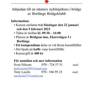Det vore bra om det kommer lite fler spelare på Torsdagar så de nya får se att det är det roligaste kortspelet som finns. Att vi på klubben är trevliga och sociala.
