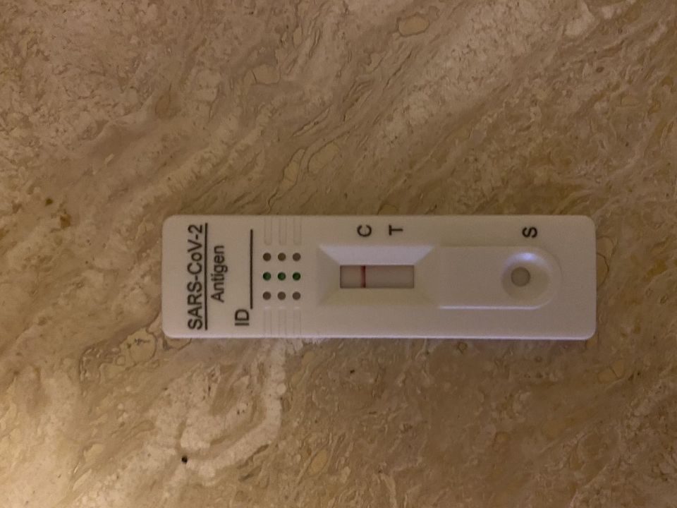 Köerna till farmaciorna är långa och testen i flera fall slut. Vi hade tur och fick komma in direkt på ett ställe.