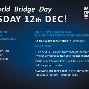 Den 12 december arrangerar WBF en testdag inför det första världsmästerskapet i robotbridge, World Online Championship (WOC). Ett mästerskap med en total prispott om 500 000 USD där hela 100 000 USD går till vinnaren.